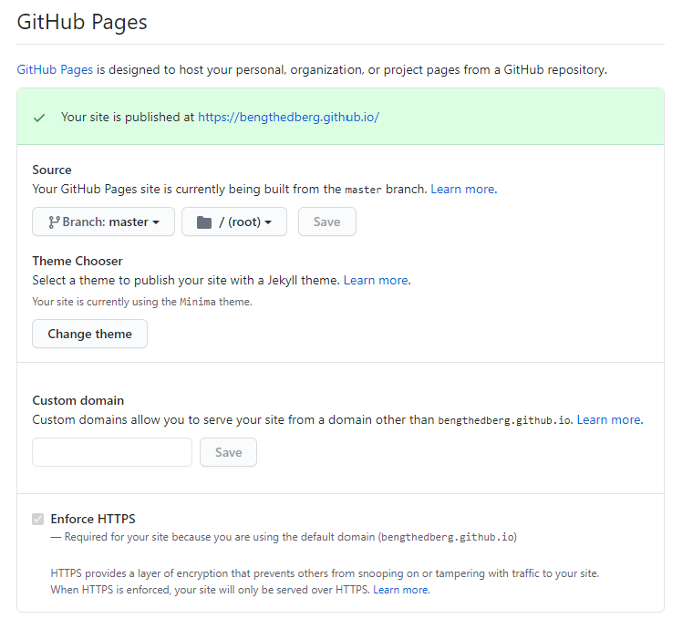 Your site is now live, go to your GitHub Page link and check it out. Note that initially it can take up to 20 minutes for it to work so be patient.