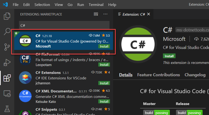Note: The original “C#” extension (OmniSharp) is still available but C# Dev Kit is now Microsoft’s recommended extension. It includes the C# extension as a dependency.