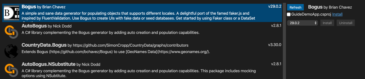dotnet add package Bogus